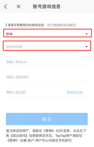 (5)验证码核验通过后,即可成功绑定角色。