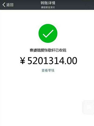 2、咱们先来瞧瞧怎样在微信红包上玩出新花样。眼看自己生日就快到了,心里清楚某人肯定不会有什么表示,可又忍不住想满足一下自己的虚荣心。打开微信的转账界面,乍一看那金额,是不是感觉玩得有点夸张啦?行吧,那就先输入对方名字,接着输入一个随意的金额,就能轻松生成显示为5201314.00元的图片哦。接下来,就到了“装B”的关键步骤。把这个页面分享到朋友圈。哈哈,这下我也成功“装B”了一回!