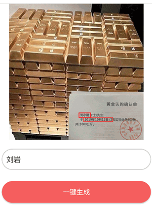 3、小编这边给大家举个例子,例如这个金条确认认购单,可以把名字换成你的。
