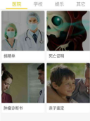 3、恶搞类图片想必也趣味十足。点开恶搞页面,在“医院”“学校”“娱乐”“其他”这些项目里,挑选你想恶搞的具体频道。要知道,医院类别里的捐精单、死亡证明、亲子鉴定这些可开不得玩笑,还是选学校相关的恶搞来玩比较妥当。