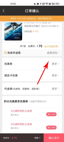 4、鉴于你是新注册用户,通常平台都会赠送优惠券,利用优惠券来抵扣相应金额,这样购票会更划算。