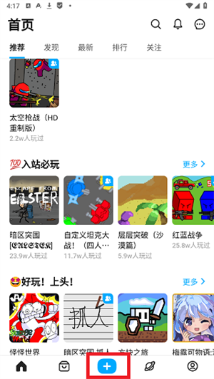 4、最后关注便可以了解好友的动态,玩他的作品了!