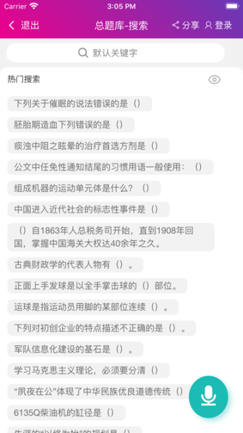 总题库答案搜索软件专注于在线试卷查询功能,包含各类考试试卷试题与答案、在线搜题.分类有医卫题库、职业资格考试、建筑工程试题、财会真题等,收录的题目数量超过2千万。
