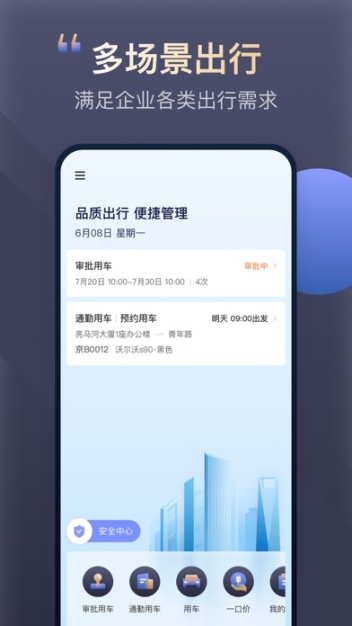 ◆ 场景丰富——多种车型和服务选择,满足企业各项出行需求,全国覆盖200多个城市,给您以专车级尊享感。当您到达机场或高铁站,无论多晚,我们会有服务专业、干净合规商务范十足的首汽约车在机场和高铁站恭候奔波辛劳的您!即便在繁华喧嚣的首都机场T3出行或回归,首汽约车专车护送,让您的出行添一份安全安心舒适,优享高端商务用车。