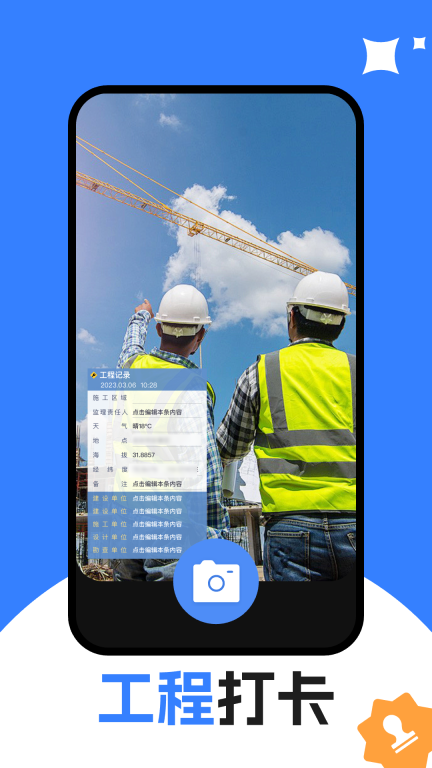 时间地点打卡(可修改自定义)、工作拍照、团队考勤打卡、建筑施工工程管理、物业管理、外勤拍照、旅行拍照、宝宝成长拍照