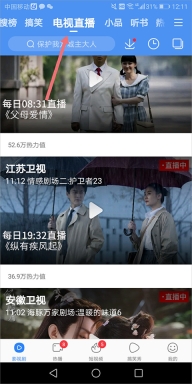 1、在百搜视频app,在首页滑动顶部的导航条,找到【电视直播】按钮,进入电视直播界面