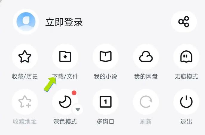 1、打开UC浏览器,在面板中点击“下载/文件”图标。