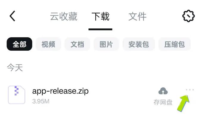 2、在下载页面,找到需要解压的压缩文件,点击右上角的“...”按钮。