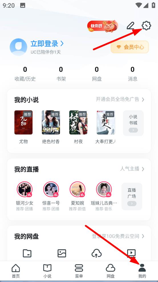 1、在本站下载UC浏览器并完成安装,安装完成后打开该浏览器,点击右下角的【我的】,接着点击右上角的【设置】,即可进入。