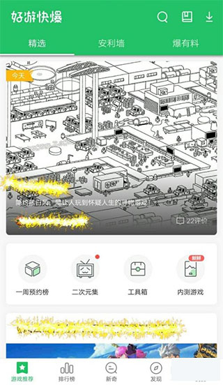 在好游快爆的老版本里,设有多个发现相关的版块。于【新奇】页面当中,能够找到【每日新发现】,再往下拉动页面,还能看到【发现良心好游戏】。
