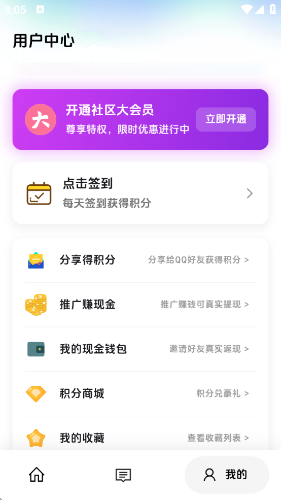 2、活动参与:参加游戏挑战、答题、抽奖、打卡等社区活动赢取积分。