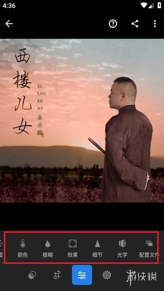 3、分别有亮度、颜色、模糊度、效果、细节处理等功能。