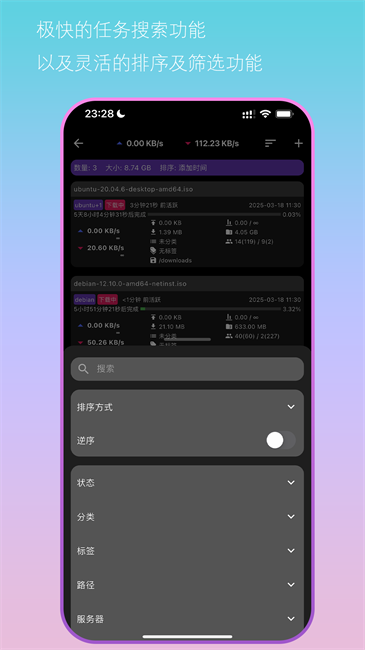 支持用户对相关的下载任务来进行灵活排序,从而可以清晰排序下载,更好的进行管理。