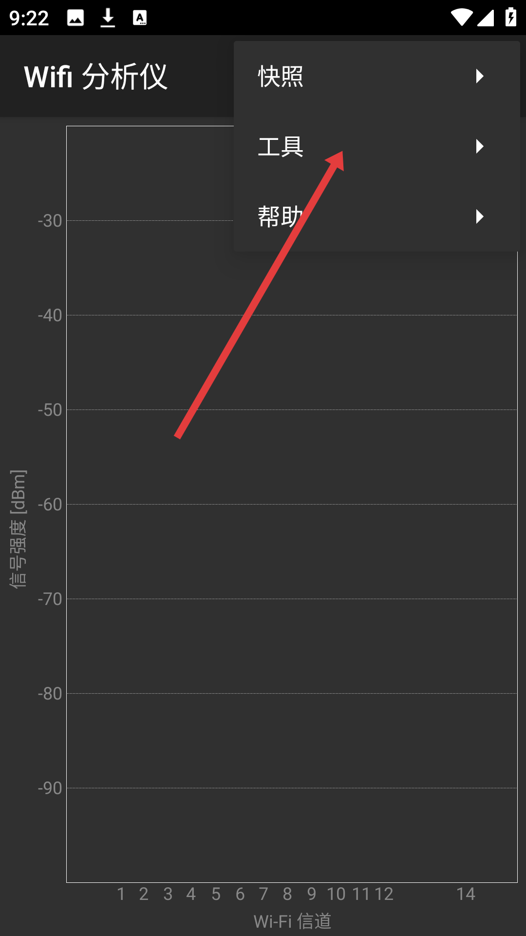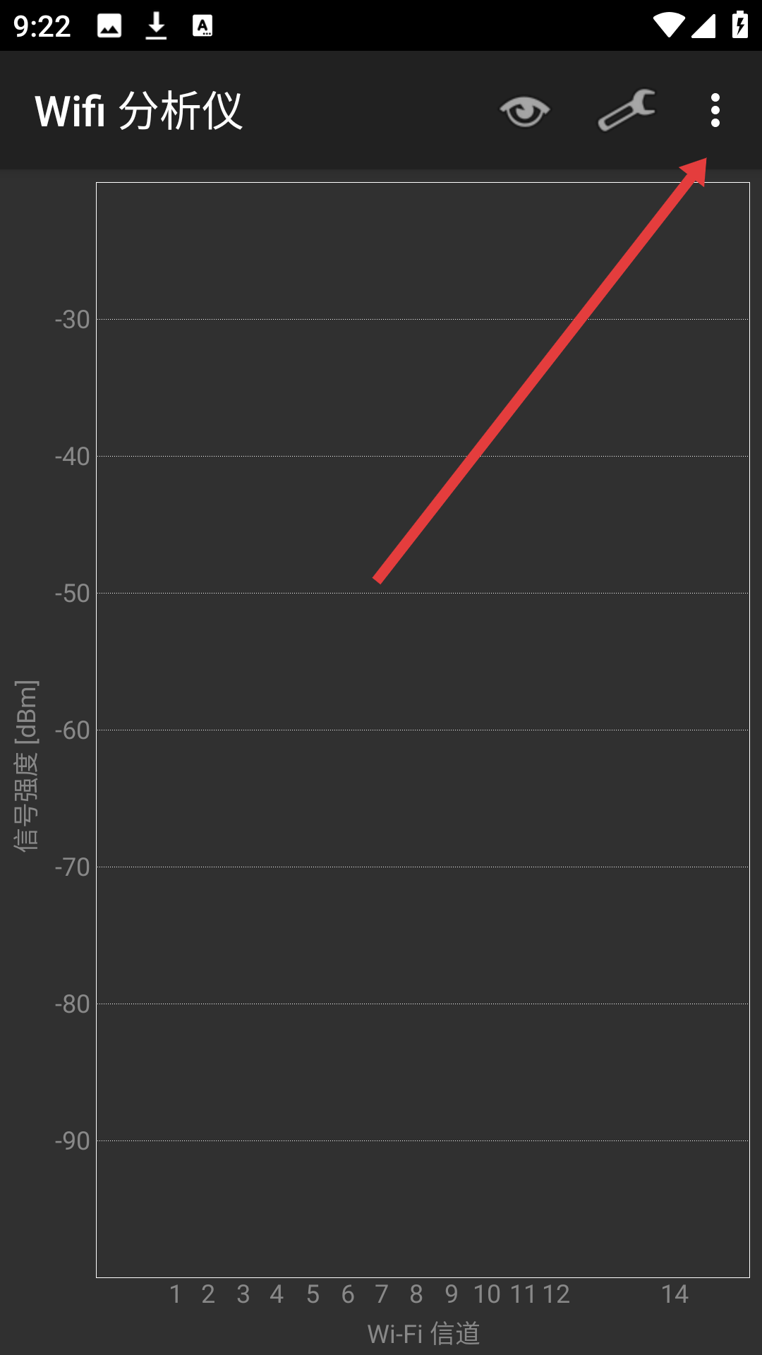 1. 在WiFi分析仪界面,轻点右上角的【三点菜单】,即可展开功能选项菜单。