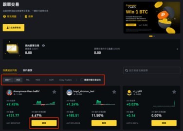 2、选择跟单投资组合。您可以通过收益率、盈亏、最大回撤等指标进行筛选。点击【跟单】。
