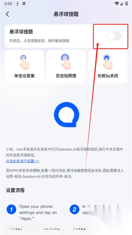 5、点击悬浮球搜题,开启后可以随时截屏搜题,更加方便