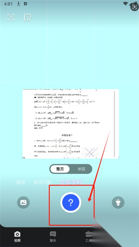 2、点击拍照,可以将问题直接拍照,软件会快速识别为您解答