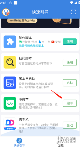 1. 打开软件,在其中寻找到“写脚本”这一选项,接着点击该选项右侧的“编写”按钮。