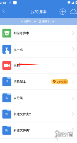 3、开始录制后,请进入新建的脚本文件夹,并点击加号以新增一个脚本。