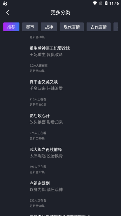 2、分类这里各种各样的短剧都有,用户可以根据分类来查找