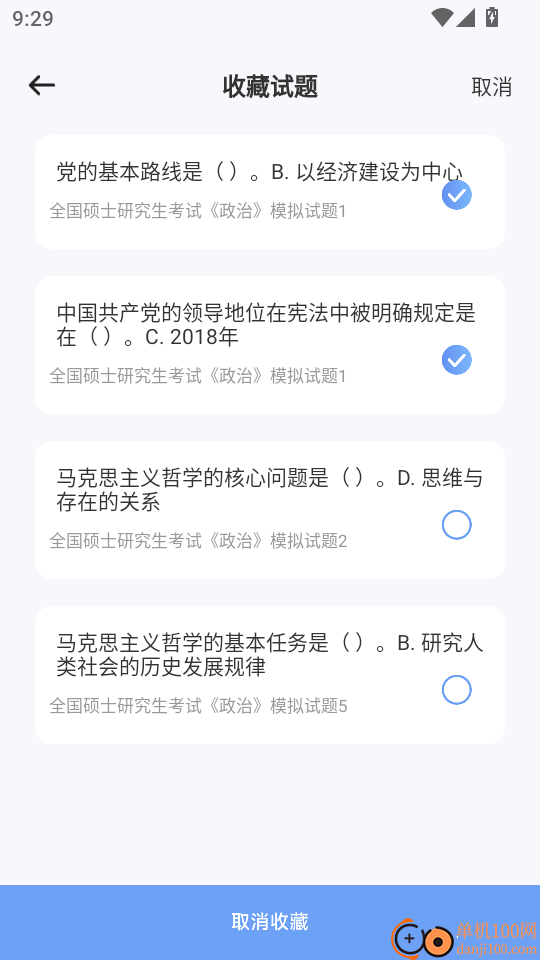 5.如此用户就可以通过勾选试题,将试题进行取消收藏了
