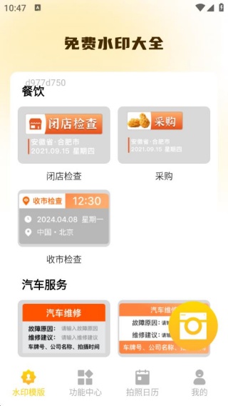 1. 下载并安装软件后进入,进入水印模板界面,这里提供餐饮、汽车服务、家政服务等模板。