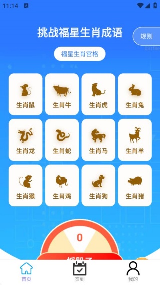 2、首页有各种生肖提供,即刻进入到福星生肖宫格的挑战中。