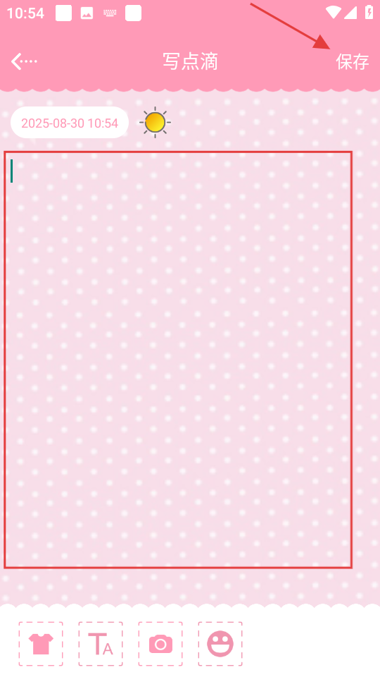 3、于写点滴页面输入内容完毕后,点击保存按钮。