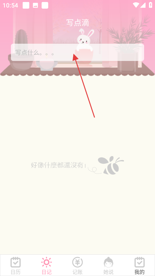 2. 在日记页面点击“写点什么”,即可进入写点滴页面。
