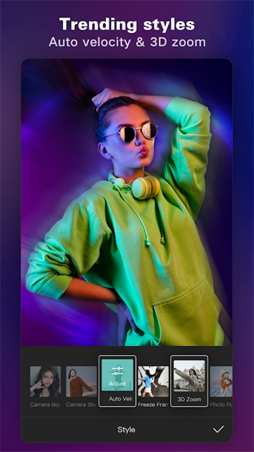 编辑具有数百种趋势效果的视频,包括毛刺,模糊,3D等。