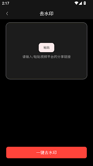 2、从抖音、哔哩哔哩等平台分享视频获取视频链接后,粘贴该链接,接着点击【一键去水印】。