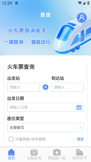 1. 设定出发站、到达站、出发日期以及座位类型等条件,精确查找契合需求的车次,并且可以选择仅查看高铁或动车。
