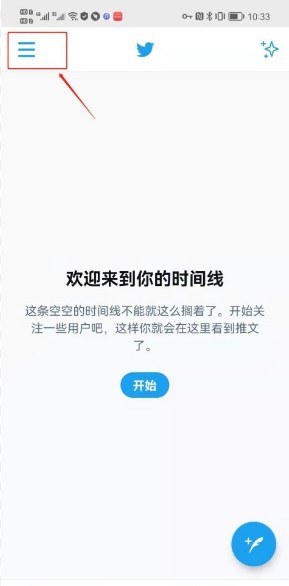 第一步,打开Twitter应用程序或者网页版,接着点击页面左上角的用户头像。