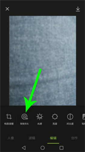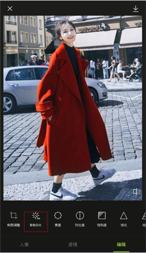 4、进入编辑界面后,点击“智能优化”选项,以使图片清晰度得到提升。