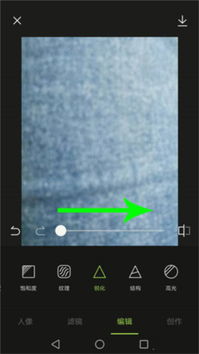 6、开启锐化工具后,朝着右侧拖动白色圆球,增强锐化效果,以此让照片变得更加清晰。