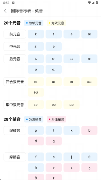 【双音切换功能】支持英音与美音自由切换,全面涵盖48个国际音标,还能通过相似音标对比进行学习。