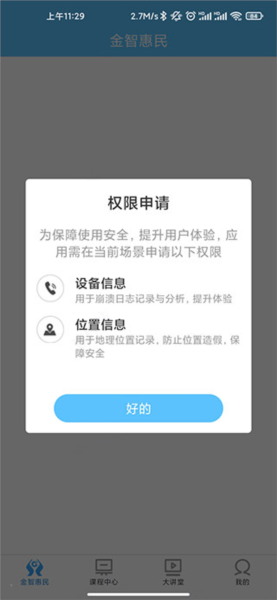 1. 开启建行学习网络系统的手机版本,运行登录账号,并赋予软件所需权限。