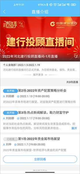 5、在大讲堂的直播间,用户不仅能够在线观看或提前预约,还可随时回看直播内容。