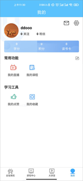 6、最后,在我的模块里还能够看到学分、积分、收藏以及课程等个人相关内容。