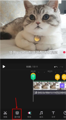 1. 第一步,打开需要编辑的视频,接着点击下方的画中画功能,挑选一张图片当作背景。