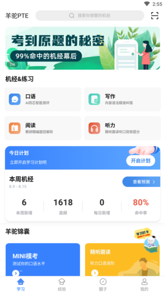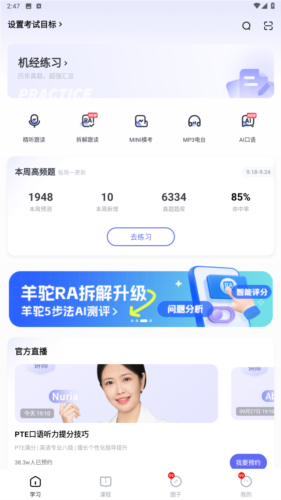 4、羊驼老师的名师教研团队精心打造了超全且实时更新的机经库,同时还提供涵盖全部20种题型的练习题库。