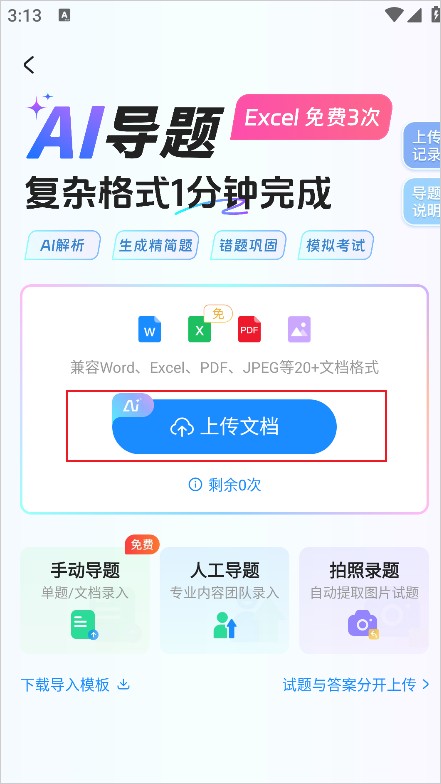 5. 在此处上传你个人的问题,便于你进行在线练习。