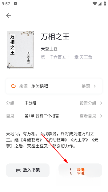 3、在找到的小说页面中,选择合适的阅读源。