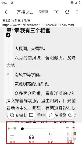 4、进入小说阅读界面后,可以找到一个“听书”按钮。