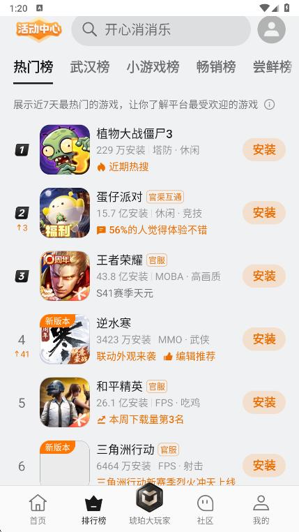 2、点击排行榜您是可以浏览到众多的热门游戏