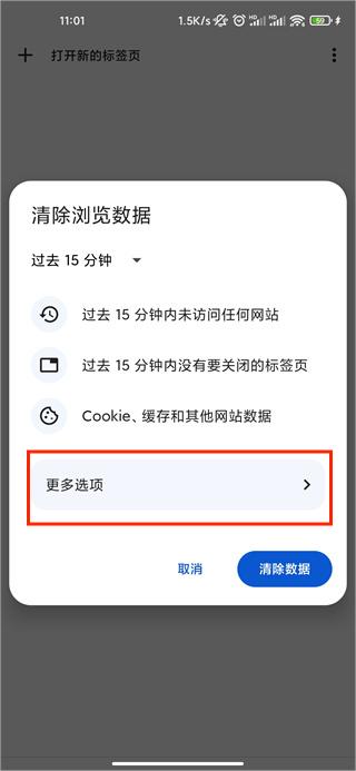 2. 在弹出的窗口里选取【清除浏览数据】。