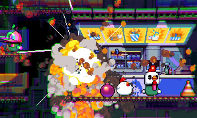 炸弹鸡中文版由Nitrome团队精心研发,良心工作室负责代理,这是一款别具一格的横版动作冒险游戏。玩家所操控的主角,是一只模样憨态可掬、呆萌可爱,却有着一身非凡绝技的鸡,它具备一项极为特殊的能力——随时“生”出炸弹。游戏玩法主要围绕炸弹的投放与引爆来进行:玩家可以通过精确控制炸弹的抛射轨迹,从而直接消灭各种类型的敌人。