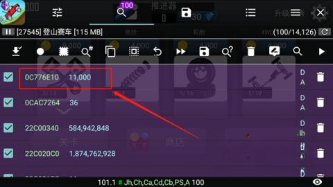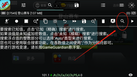 3、运用面板搜索功能,依据当前游戏数值开展d类或e类搜索,例如血量若为25555,将其修改成期望的数字。