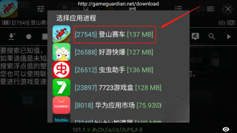 5、轻点h5gg的悬浮窗口,然后在众多选项中挑选《登山赛车》。
