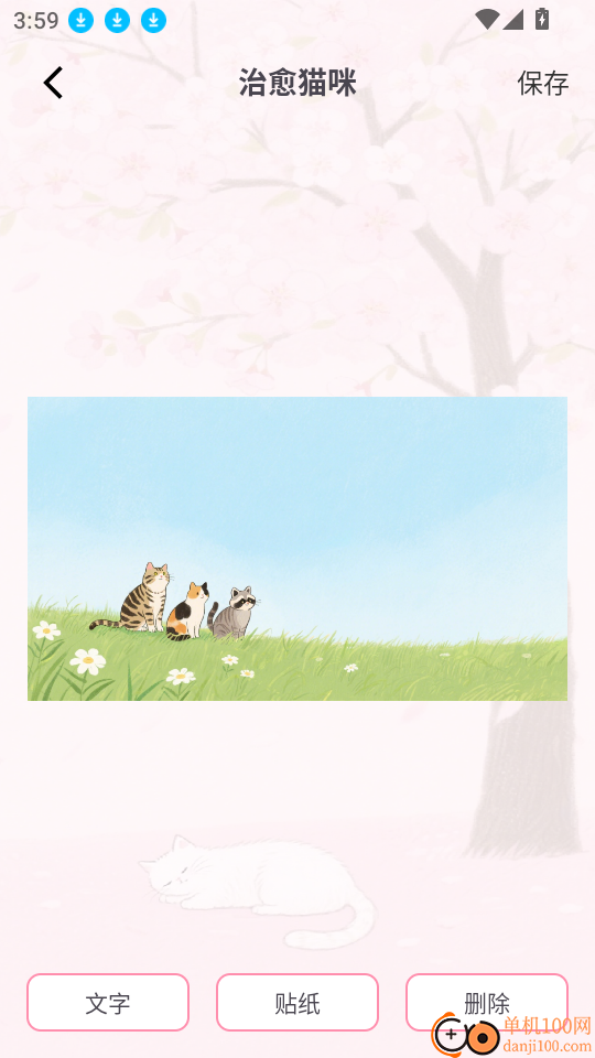 5、接下来,输入祝福语的文字内容,添加心仪的贴纸后,点击右上角的“保存”按钮,就能一键完成保存。